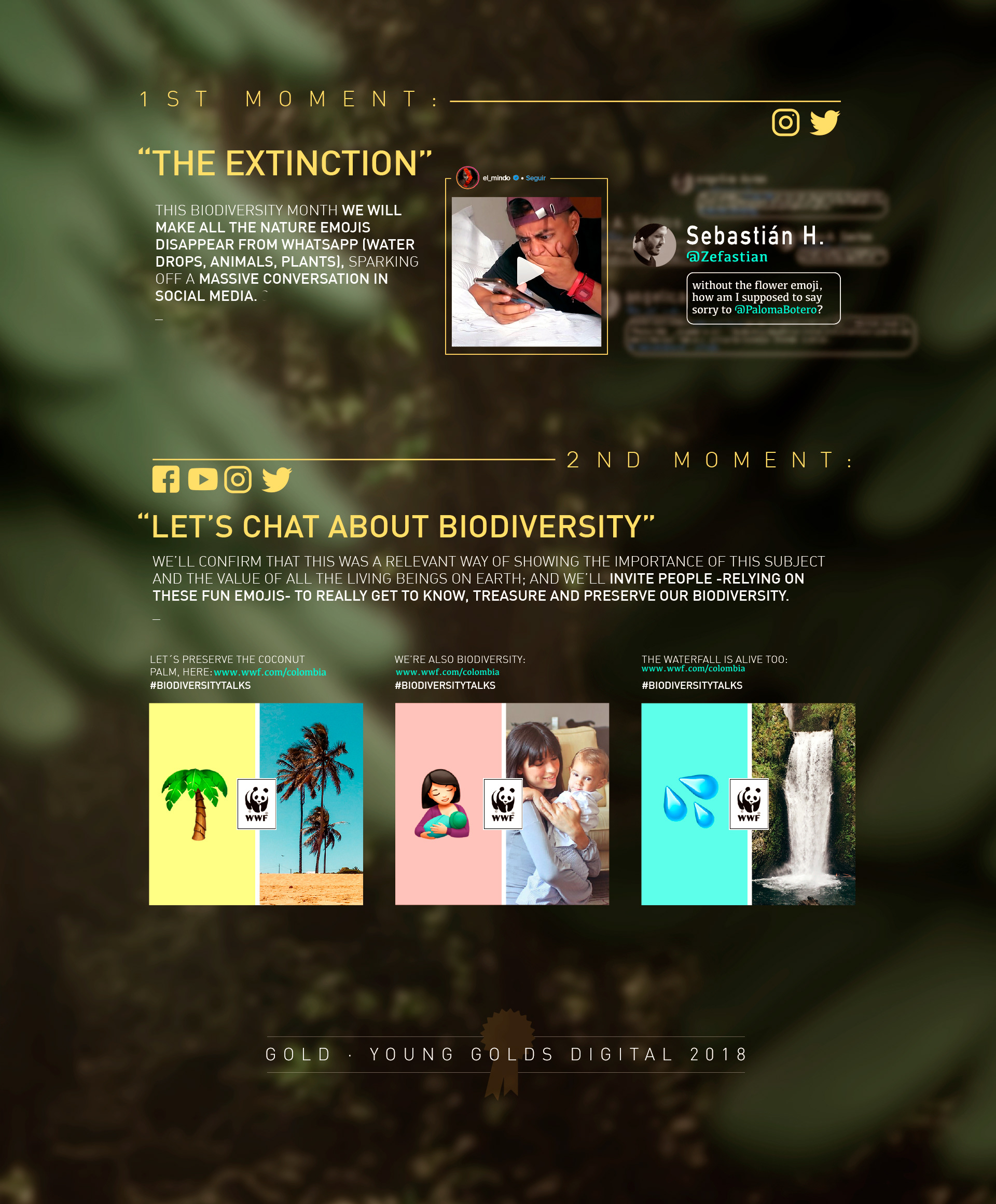 BIOEMOJIS: Un movimiento digital que pondrá a toda Colombia a chatear sobre biodiversidad. Comenzando con la extraña desaparición de todos los emojis que representan la vida del Planeta. Para luego, junto a WWF reflexionar sobre el significado y valor de la BIODIVERSIDAD.